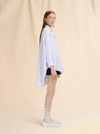 Shirt made from organic cotton poplin. Oversized fit with longer back hem, 3/4 sleeves and chest pocket. Elevated with a contrast ribbon at the neck that ties in a bow. MODEL CAMA0653QSTCY6700W01