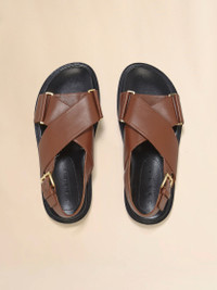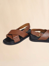 Iconic Fussbett crisscross sandal in smooth calf leather with rectangular rings and back strap with metal buckle. Gold hardware. Leather insole. Iconic sole in leather with a central layer in micro, outsole in jute. Made in Italy MODEL FBMS005201P361400M29 COMPOSITION Upper: 100% Calf Leather - Lining: 100% Calf Leather - Inside: 100% Ovine Leather - Sole: 100% Rubber CARE INSTRUCTION Do not wash. Do not bleach. Do not iron. Do not dry clean. Do not tumble dry. Do not professionally wet clean.