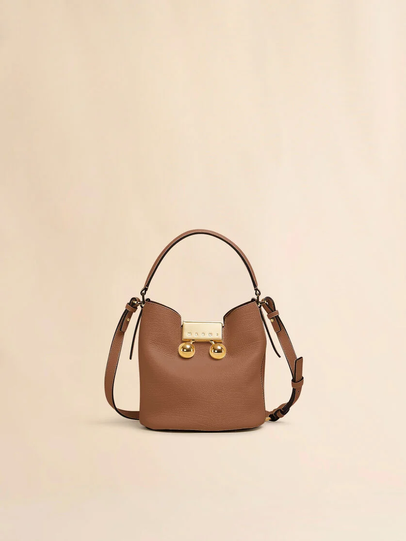 BROWN LEATHER TRUNKAROO BUCKET BAG
