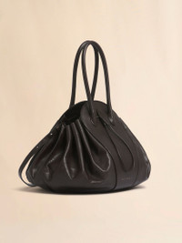 Tulipea large bag made from supple buffalo leather with natural veining and an uneven texture that renders every piece unique. Treated with a natural-effect glossy finish. Crafted with a rigid central body and flexible unlined bellows shape at the sides evoking the delicate opening of a bud. Tubular top handles and detachable shoulder strap with D-rings and studs. Hot-stamped Marni logo on the front. Drawstring fastening and soft faux suede lining. Made in Italy MODEL SBMP0263A0P871000M80