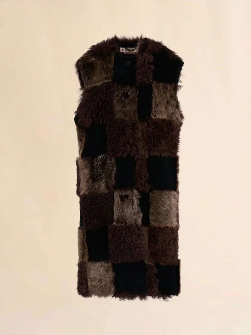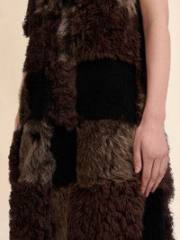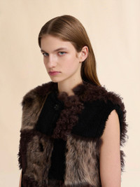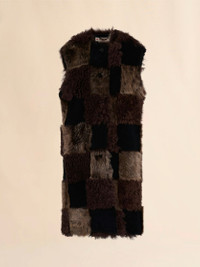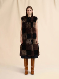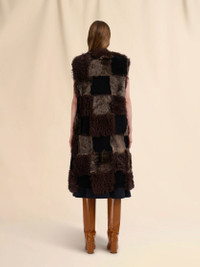 Boxy shearling longline vest. Inlaid checkerboard design, combining smooth, curly, long-hair and short-hair textures for a tactile effect. Button closure and side openings. Unlined. Made in Italy MODEL GLMX0099Q0ULM124ROM88 FIT The model is 5' 10''. The model is wearing size 40 IT. COMPOSITION Fur: 100% Lamb Fur - Pocket Lining: 100% Cotton Knit