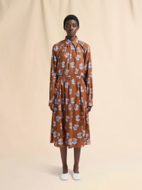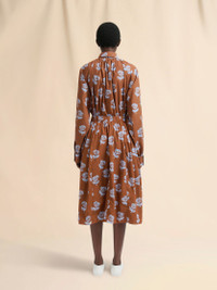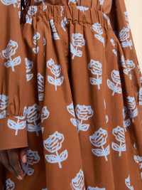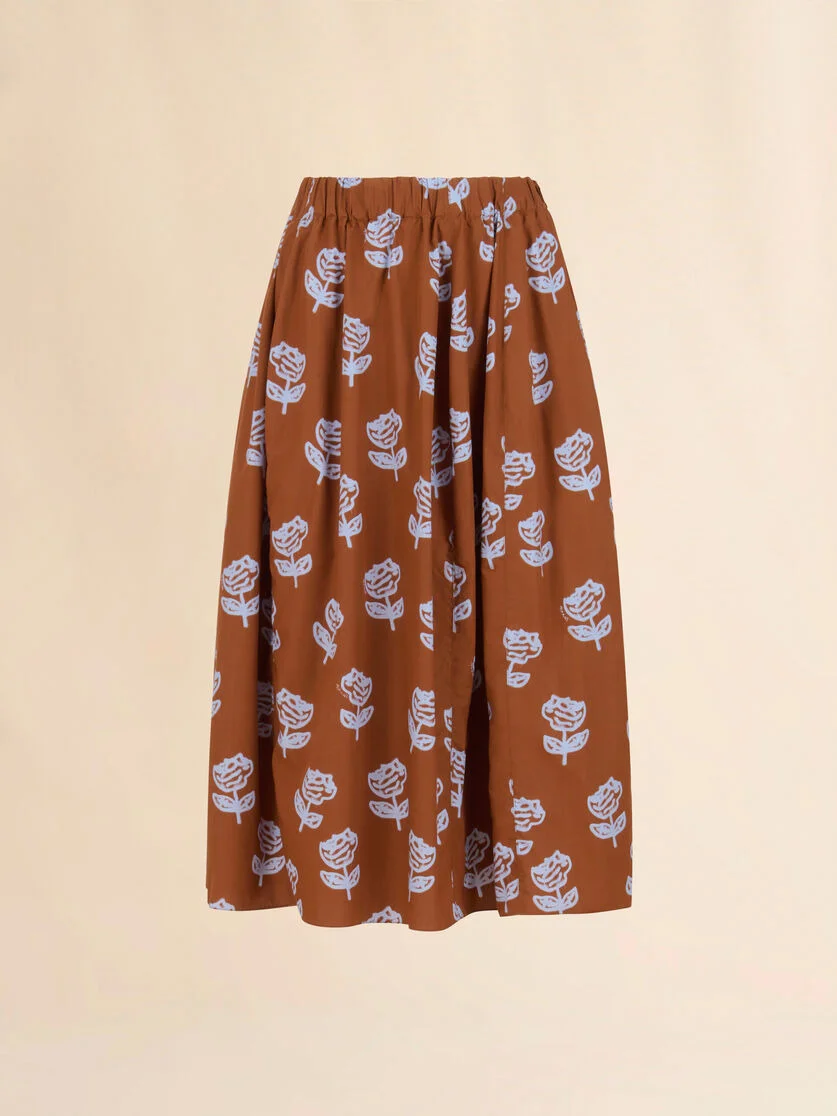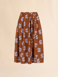 BROWN POPLIN EGG SKIRT WITH SPRAYED ROSES PRINT