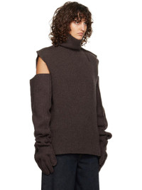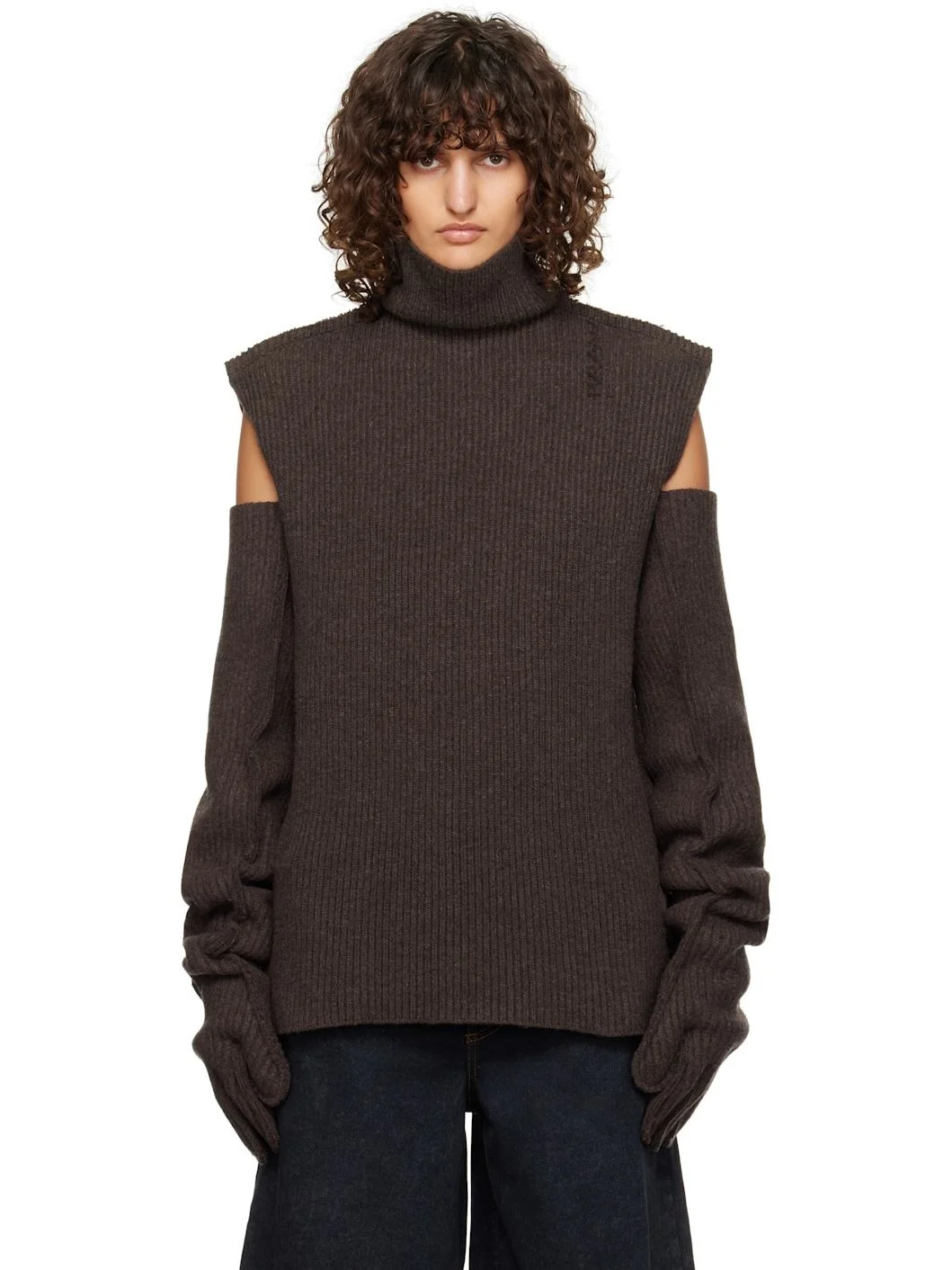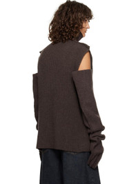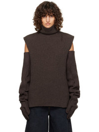Rib-knit virgin wool turtleneck. Exposed seams and raw edges throughout. · Dropped armscyes · Hand-stitched detailing at shoulder Supplier color: Chestnut