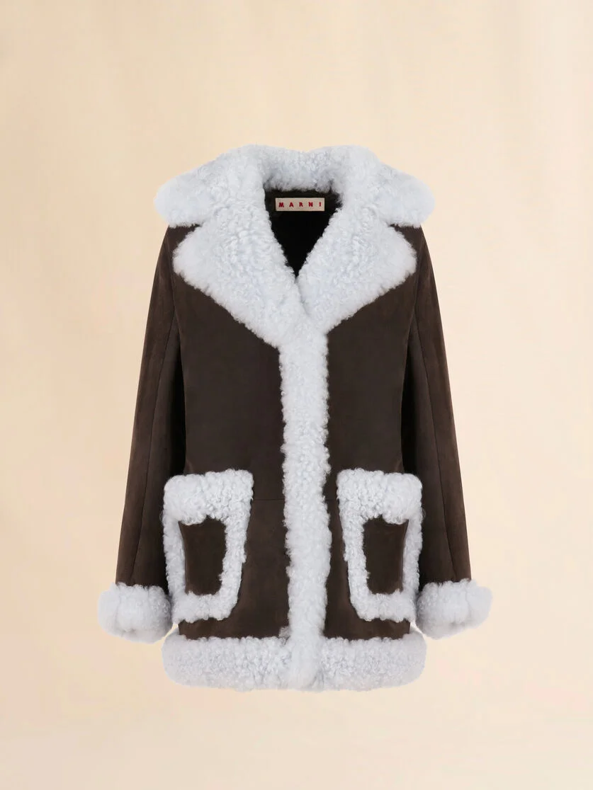 Oversized jacket made from sophisticated Brisa shearling. Fluffy collar and trims with characteristic bleached tips. Patch pockets. Embossed Marni patch on the back neck. Made in Italy MODEL GIMX0313Q0ULM13800M75