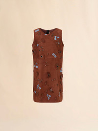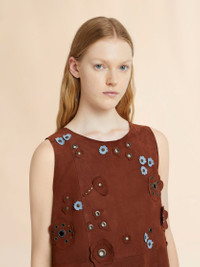 BROWN SUEDE DRESS WITH DAISY APPLIQUÉS