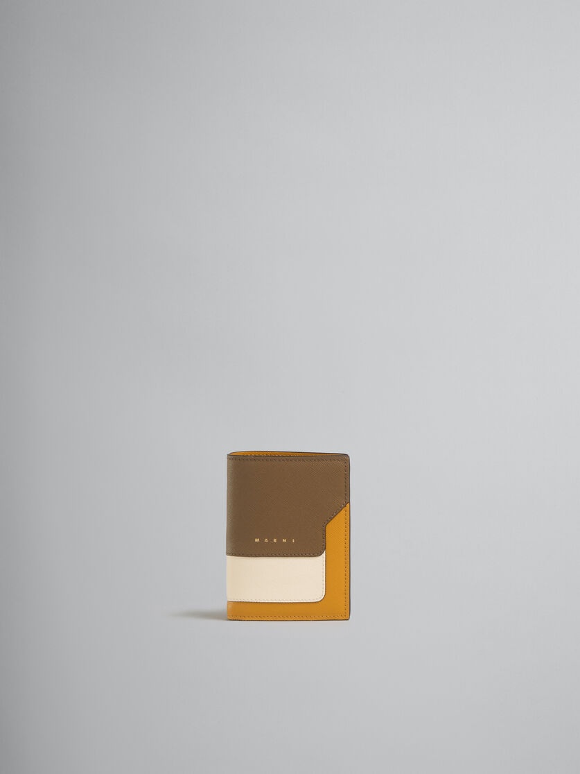BROWN WHITE AND ORANGE SAFFIANO LEATHER BI-FOLD WALLET