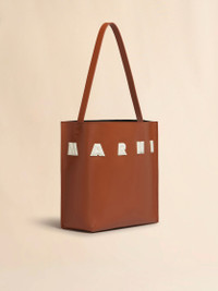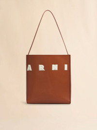 Museo hobo bag crafted from smooth calfskin leather. Small size. Embellished with contrast puffy Marni patches. Open design with single top handle. Lined interior with zip pocket and embroidered logo patch. Made in Italy MODEL SHMP0111U0P6483ZO722 COMPOSITION Body: 100% Calf Leather - Inside: 100% Calf Leather - Lining: 95% Polyester 5% Polyurethane - Metallic Parts: 100% Brass - Metallic Parts: 100% Zama