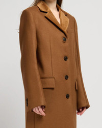BROWN WOOL FELT COAT WITH VELVET DETAILS