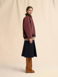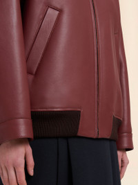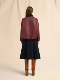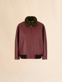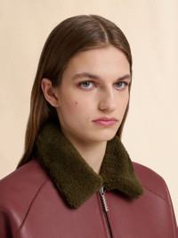 BURGUNDY LEATHER JACKET WITH SHEARLING COLLAR