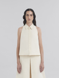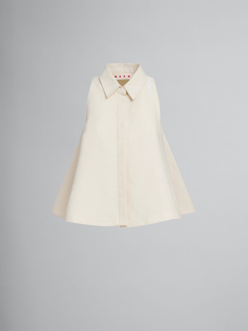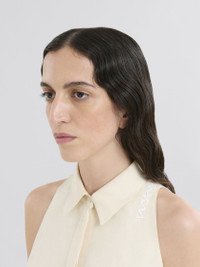 Sleeveless cady cotton shirt. The A-line silhouette has a shirt collar, hidden buttons along the placket, and a hand embroidered Marni Symbol on the left shoulder. Made in Italy MODEL CAMA0612S0TCX2800W06 FIT The model is 5' 10''. The model is wearing size 40 IT. COMPOSITION Primary Fabric: 100% Cotton Woven