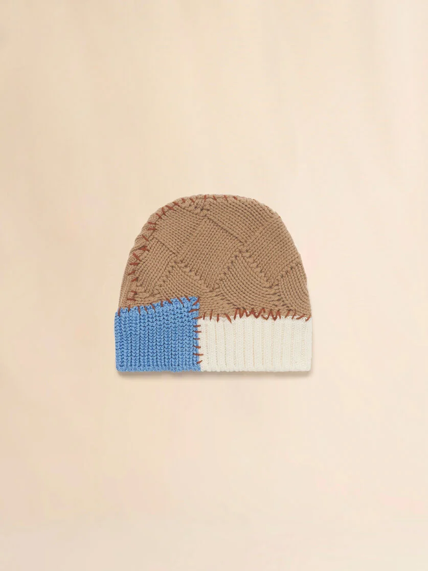 BROWN WOOL MIXED KNIT BEANIE WITH MARNI MENDING