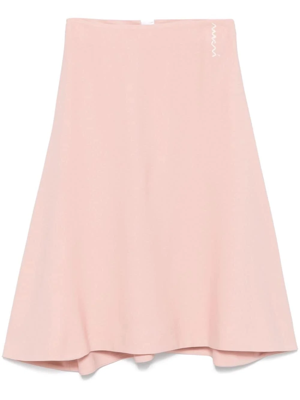cady midi skirt Highlights - Rose pink - Cady texture - Rear zip fastening - Embroidered logo to the front - A-line skirt - Full lining - Flared hem - Mid-length Made in Italy Composition Lining: Cupro 60%, Silk 40% Outer: Viscose 96%, Elastane 4% SIZE & FIT Model measurements Height 5 ft 11 in(1.8 m) Bust/Chest 32.67 in(83 cm) Hips 35.03 in(89 cm) Waist 25.19 in(64 cm) FittingInformation This midi-length skirt is intended to be worn just below the waist Made from a midweight fabric Measurement HIPS 40.15 in(102 cm) LENGTH 29.52 in(75 cm) WAIST 27.55 in(70 cm)