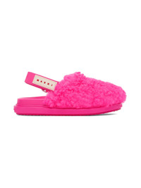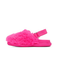 Shearling and buffed calfskin loafers in pink. · Velcro slingback strap · Rubberized logo patch at outer side · Logo embossed at molded leather footbed · Logo embossed at heel · Treaded rubber sole Supplier color: Starlight pink Upper: lambskin, calfskin. Sole: rubber. Made in Italy 232379F121015