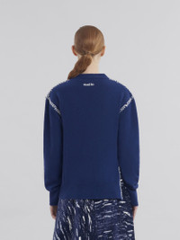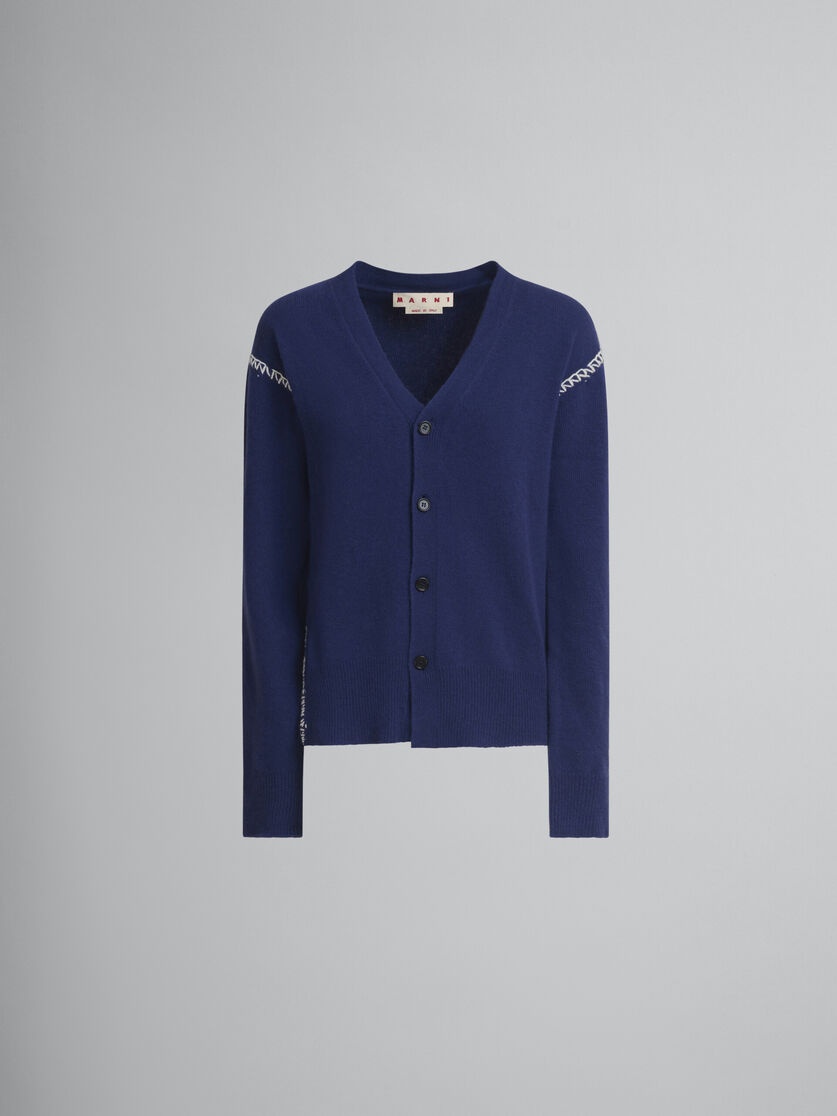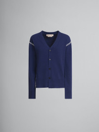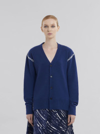 BLUE WOOL-CASHMERE CARDIGAN WITH MARNI MENDING