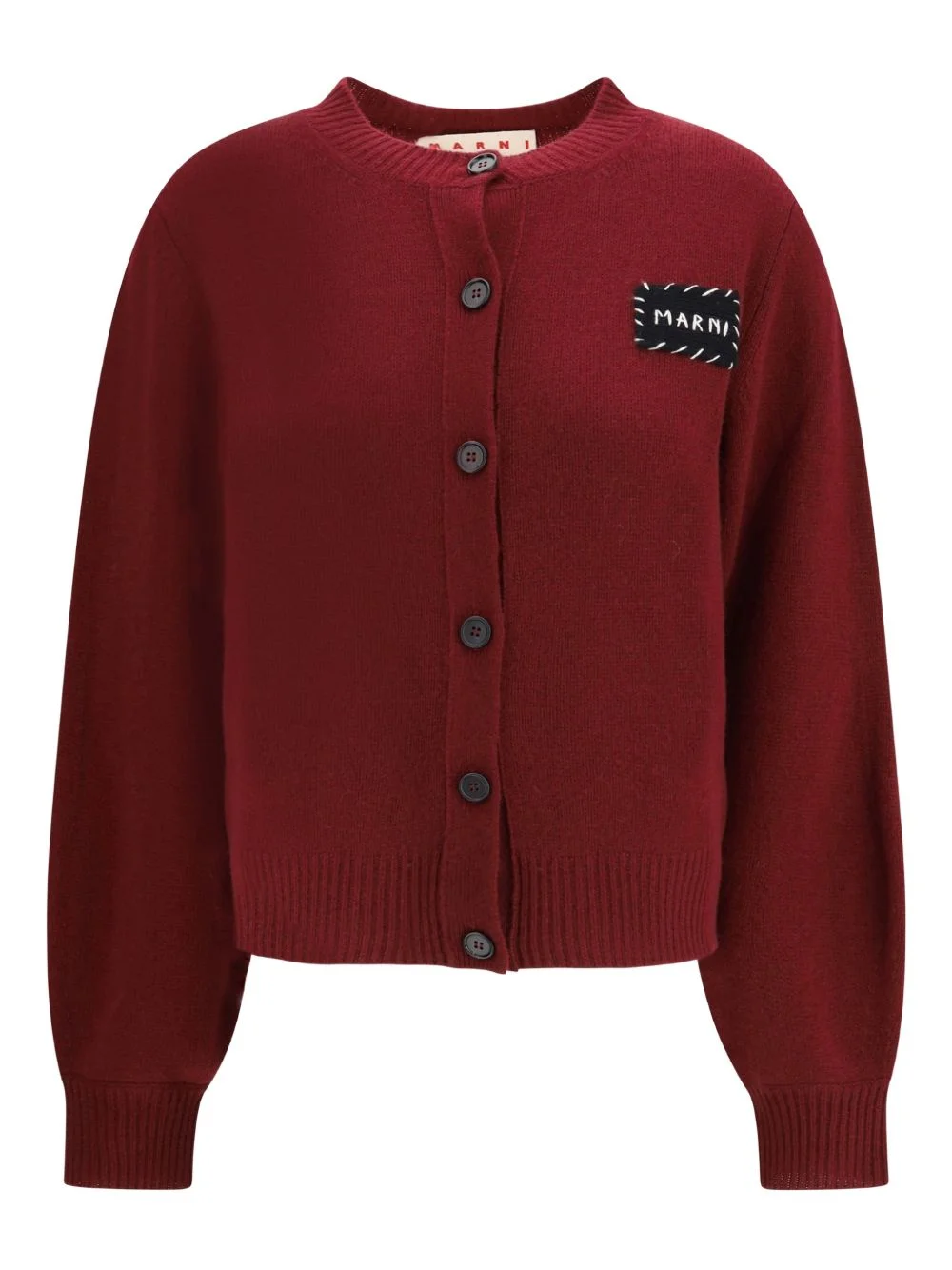 logo-patch button-fastening cardigan Highlights - Dark red - Ribbed knit - Logo patch - Crew neck - Button fastening - Ribbed hem Made in Italy Composition Cashmere 100% SIZE & FIT FittingInformation Designed for a relaxed fit, this piece allows for comfort and movement when worn Made with a midweight knit, this piece offers some stretch Washing instructions Read Manufacturer Guidelines