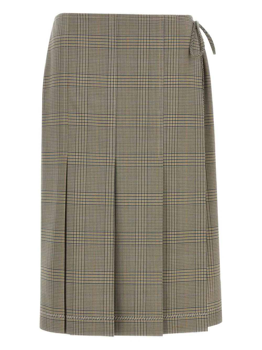 pleated wrap skirt Highlights - Gray - Checked pattern - Side lace closure - Front pleats - Wrap style - Wool blend Made in Italy Composition Polyester 53%, Virgin Wool 43%, Elastane 4% Washing instructions Read Manufacturer Guidelines
