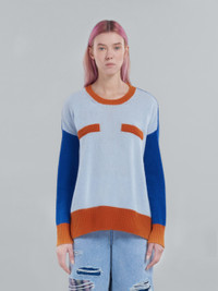 COLOR BLOCK LIGHT BLUE CASHMERE SWEATER