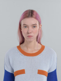 Crewneck color block sweater. Long-sleeved. Loose fit. Hand embroidered logo on back neckline. Made in Italy. DETAILS COMPOSITION Primary Fabric: 100% Kashmir Knit