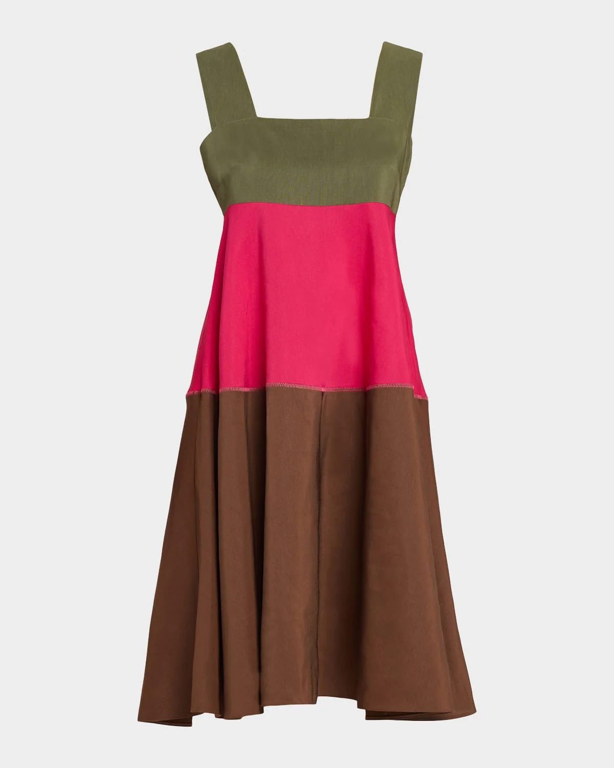 This dress from Marni features an empire silhouette with a tiered colorblocking and a leather logo tab on the back Square neckline Sleeveless Empire waist A-line silhouette Knee length Invisible side zip Ramie/viscose Do not iron Made in Italy SIZE & FITModel measurements: 5 & apos;10" tallModel is wearing a US size 4/Small