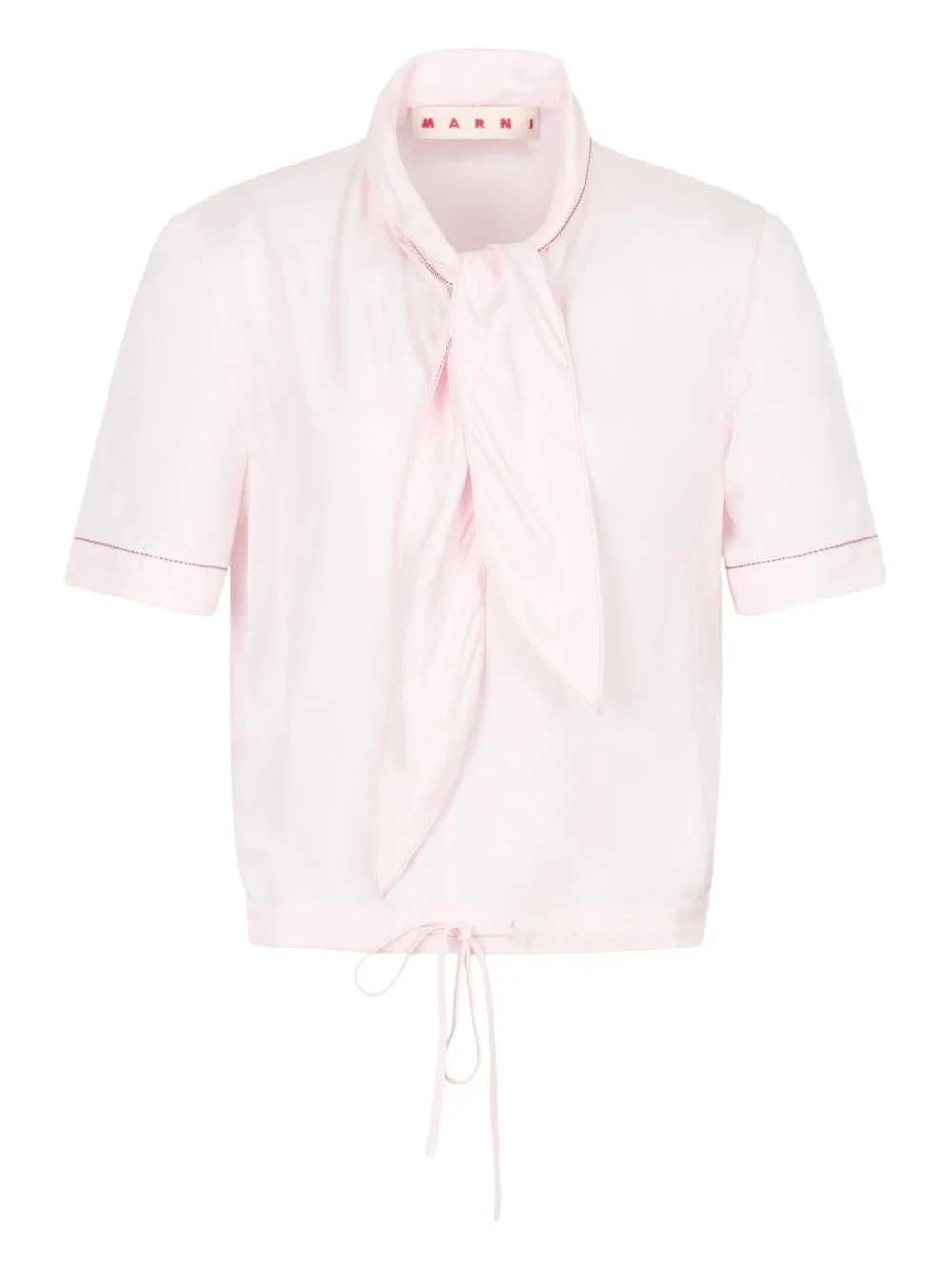 contrast-stitching blouse Highlights - Pink - Contrast stitching - Drawstrings at the hem - Short sleeves Made in Italy Composition Rayon 100% Washing instructions Read Manufacturer Guidelines