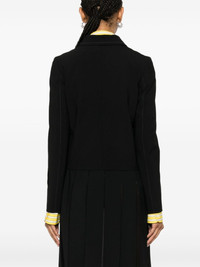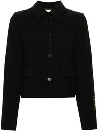 contrast-stitching jacket Highlights - Black - Contrast stitching - Classic collar - Structured shoulders - Long sleeves - Logo tag - Two front flap pockets - Straight hem - Full lining - Front button fastening Made in Italy Composition Outer: Polyester 53%, Virgin Wool 43%, Spandex/Elastane 4% Lining: Viscose 100%, Cupro 100%, Cotton 100% SIZE & FIT Model measurements Height 5 ft 10 in(1.78 m) Bust/Chest 32.67 in(83 cm) Hips 35.43 in(90 cm) Waist 23.22 in(59 cm) FittingInformation Designed for a relaxed fit, this piece allows for comfort and movement when worn Made from a midweight fabric This piece fits true to size – take your usual size