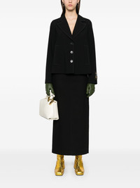 contrast-stitching jacket Highlights - Black - Cady texture - Decorative contrast stitching - Front button fastening - Notched lapels - Long sleeves - Two front welt pockets - Inverted pleat - Full lining - Internal slip pocket - Straight hem Made in Italy Composition Outer: Polyester 53%, Virgin Wool 43%, Elastane 4% Lining: Viscose 100%, Cupro 100%, Cotton 100% SIZE & FIT Model measurements Height 5 ft 10 in(1.78 m) Bust/Chest 33.85 in(86 cm) Hips 36.61 in(93 cm) Waist 26.77 in(68 cm) FittingInformation Designed to be unstructured, offering a loose fit throughout Made from a midweight fabric Washing instructions Dry Clean Only