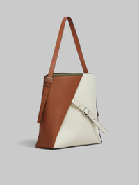 BROWN AND WHITE LEATHER REVERSE HOBO BAG