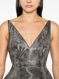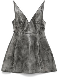 flared mini dress Highlights - Dark grey - Calf leather - Washed effect - Crinkled finish - Flared skirt - Short rear zip fastening - Plunging v-neck - Sleeveless - Fitted waistline - Full lining - Straight hem - Thigh-length Made in Italy Composition Outer: Calf Leather 100% Lining: Viscose 100% SIZE & FIT Model measurements Height 5 ft 11 in(1.8 m) Bust/Chest 33.07 in(84 cm) Hips 37.4 in(95 cm) Waist 25.19 in(64 cm) FittingInformation Designed for a close fit at the chest and waist with a loose fit at the hip The dart stitching adds structure and a closer fit in the torso of this piece Firm leather offering little flexibility to maintain its durability and sturdiness Washing instructions Dry Clean Only