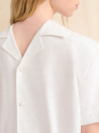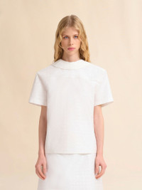 Boxy short-sleeved top made from cotton-viscose toile. Delicate jacquard design, combining a checked pattern with polka-dots. Back-to-front shirt design with buttons and Cuban collar on the back. Made in Italy MODEL TTMA0395S0UTC482JQW02 COMPOSITION Primary Fabric: 67% Cotton Woven 33% Viscose-Rayon Woven - Inside: 100% Cotton