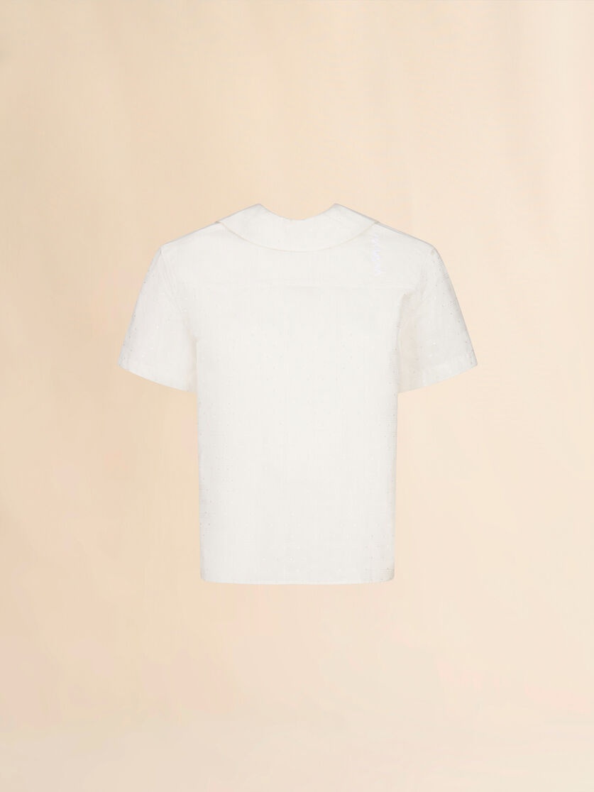WHITE COTTON-VISCOSE BACK-TO-FRONT SHIRT TOP WITH DOTTY CHECK