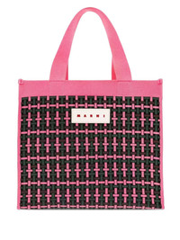 cotton-blend tote bag Highlights - Pink and black - Woven-style pattern - Top handles - Internal zip pocket Made in Italy Composition Outer: Cotton 52%, Polyamide 48% Lining: Cotton 100%