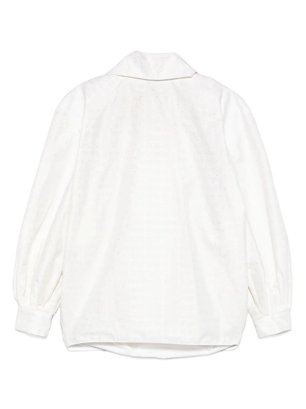cotton blouse Highlights - White - Rear teardrop fastening - Stand-up collar - Long puff sleeves Made in Italy Composition Outer: Cotton 67%, Viscose 33% Lining: Cotton 100% SIZE & FIT Model measurements Height 5 ft 10 in(1.79 m) Bust/Chest 33.07 in(84 cm) Hips 35.82 in(91 cm) Waist 24.01 in(61 cm) FittingInformation Designed for an oversized fit, offering additional room throughout Made from a midweight non-stretch fabric