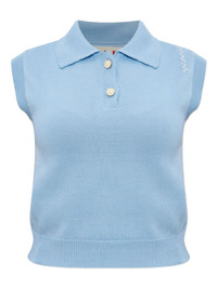 cotton polo top Highlights - Blue - Front button placket - Polo collar - Sleeveless Imported Composition Cotton 100%