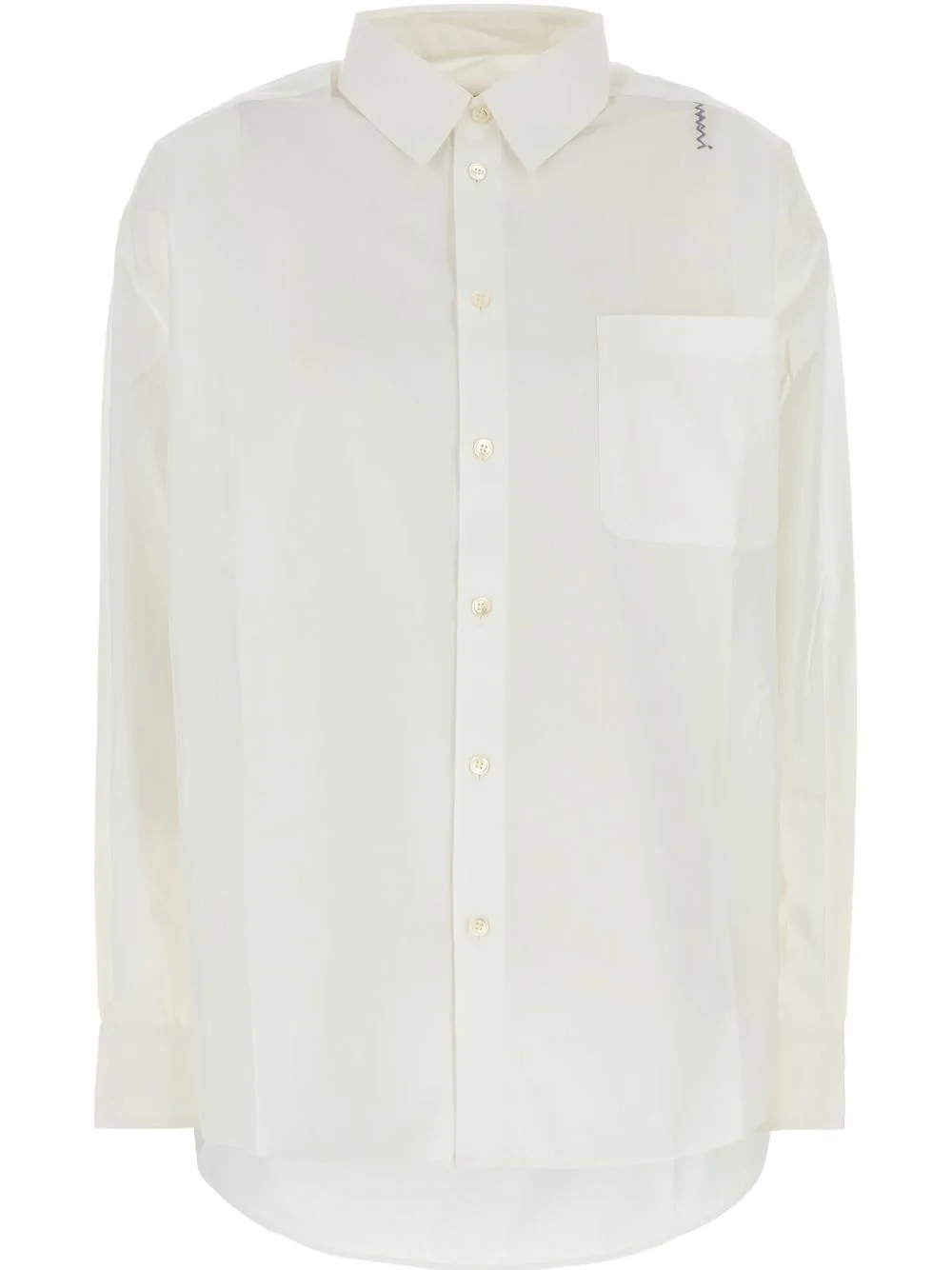 cotton shirt Highlights - Light beige - Front button fastening - Chest patch pocket - Buttoned cuffs - Rear curved hem Imported Composition Cotton 100%