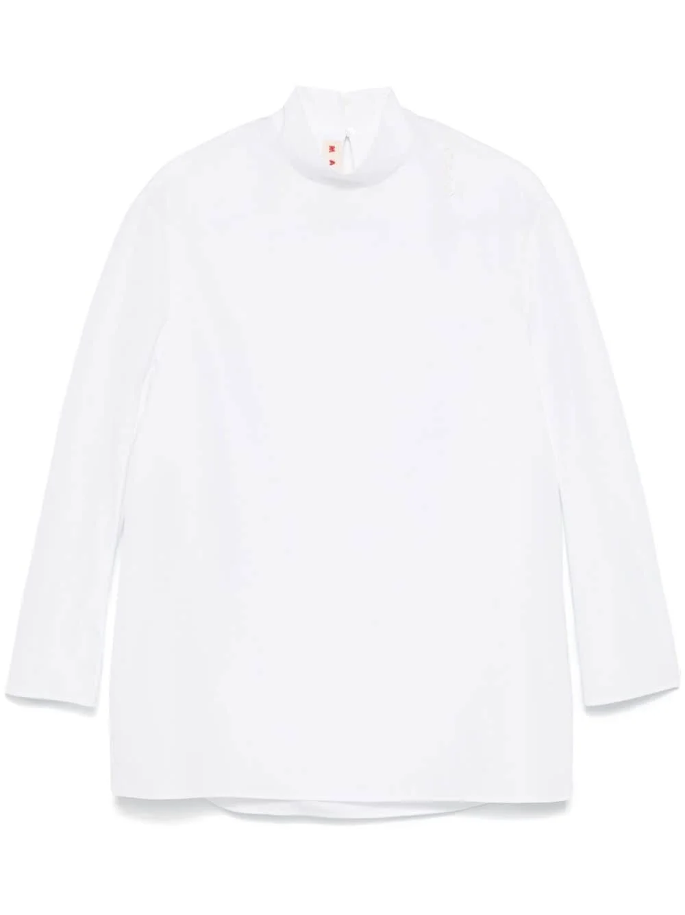 cotton shirt Highlights - White - Cotton - Poplin texture - Single rear button fastening - Mock neck - Drop shoulder - Long sleeves - Keyhole detail to the rear - Rear curved hem Made in Italy Composition Cotton 100% SIZE & FIT Model measurements Height 5 ft 11 in(1.8 m) Bust/Chest 32.67 in(83 cm) Hips 35.03 in(89 cm) Waist 25.19 in(64 cm) FittingInformation Designed to be unstructured, offering a loose fit throughout Made from a midweight non-stretch fabric