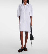 An experimental approach to shapes and patterns is the cornerstone of Marni’s eccentric aesthetic. This shirt dress is crafted from pure cotton into an oversized balloon silhouette with wide sleeves, a classic buttoned front, and point collar. Product Details - Material: 100% cotton - Care instructions: hand wash - Made in Romania - Designer color name: White - Item color: white - Contains non-textile parts of animal origin - Collar: classic (Straight point) - Closure: buttoned front - Item number: P01058572 Size & Fit - True to size - For a closer fit, we recommend taking one size down - Dropped shoulders - Oversized - Non-stretchy fabric - The model seen in the picture is 178cm-5'10" and wearing a size IT 40