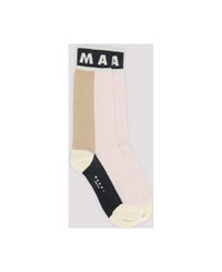 Marni Pink Cotton Socks. Crafted from beige and pink cotton blend, black edge with white contrasting logo. Made in: Italy Color: Pink Gummy Model number: SKMC0185Q0UFC159INC13