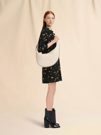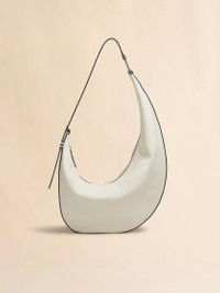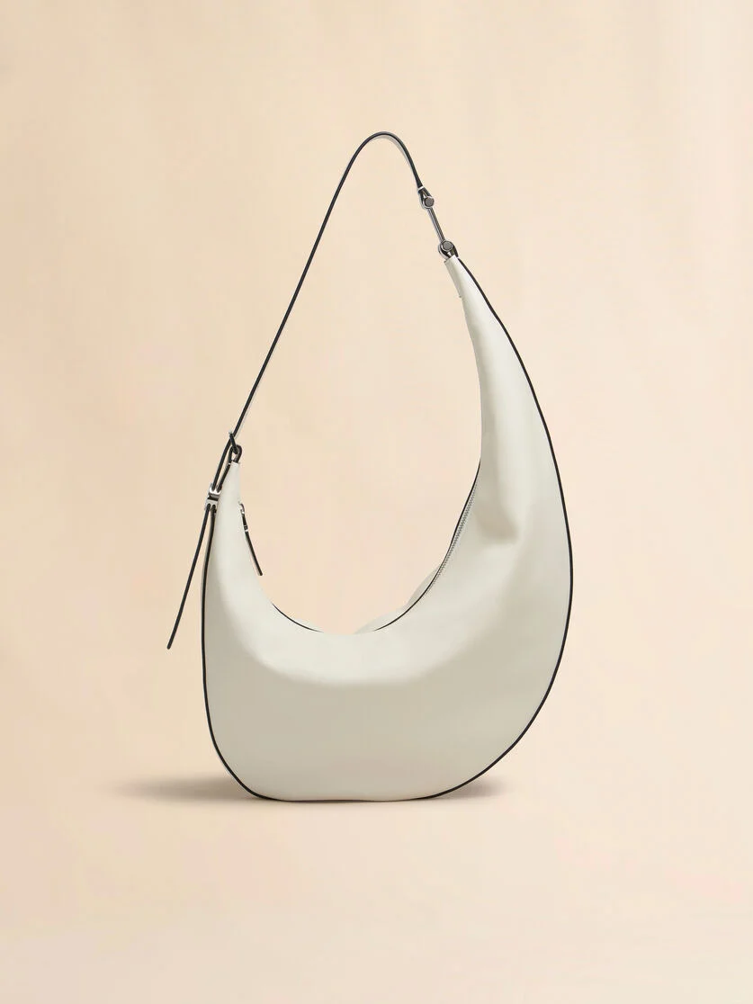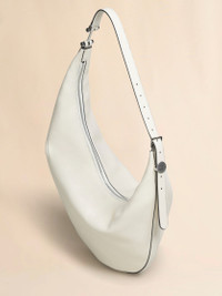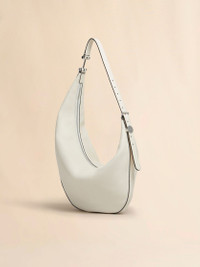 Dot hobo crossbody bag made from calfskin leather with a sumptuous, semi-gloss finish that brings out its natural grain. Small size. Slouchy asymmetric silhouette with adjustable buckle strap, embellished with a round logo-engraved disc and attached via a metal detail for a floating effect. Zip closure and inside zip pocket. Made in Italy MODEL SBMP0251U0P822200W12 COMPOSITION Body: 100% Calf Leather - Lining: 100% Cotton - Lining: 100% Polyurethane - Metallic Parts: 100% Brass - Metallic Parts: 100% Zama