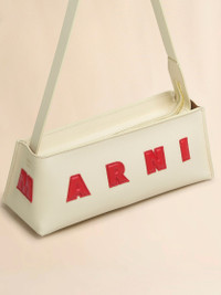 Museo compact baguette bag crafted from smooth calfskin leather. Embellished with contrast puffy Marni patches. Seamless panel construction with synthetic suede lining. Twin handles. Made in Italy MODEL SBMP0248U0P6483ZO721 COMPOSITION Body: 100% Calf Leather - Inside: 100% Calf Leather - Lining: 95% Polyester 5% Polyurethane - Metallic Parts: 100% Brass - Metallic Parts: 100% Zama