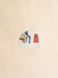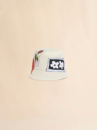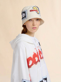 Bucket hat made from technical taffeta. Embellished with prints and patches that embody creativity and individuality. Marni label on the front. Part of the Artists’ Capsule Collection: an exclusive collab between Creative Director Francesco Risso and artists Soldier Boyfriend and Olaolu Slawn. Made in Italy MODEL CLMC0170SXUSCY3000W06