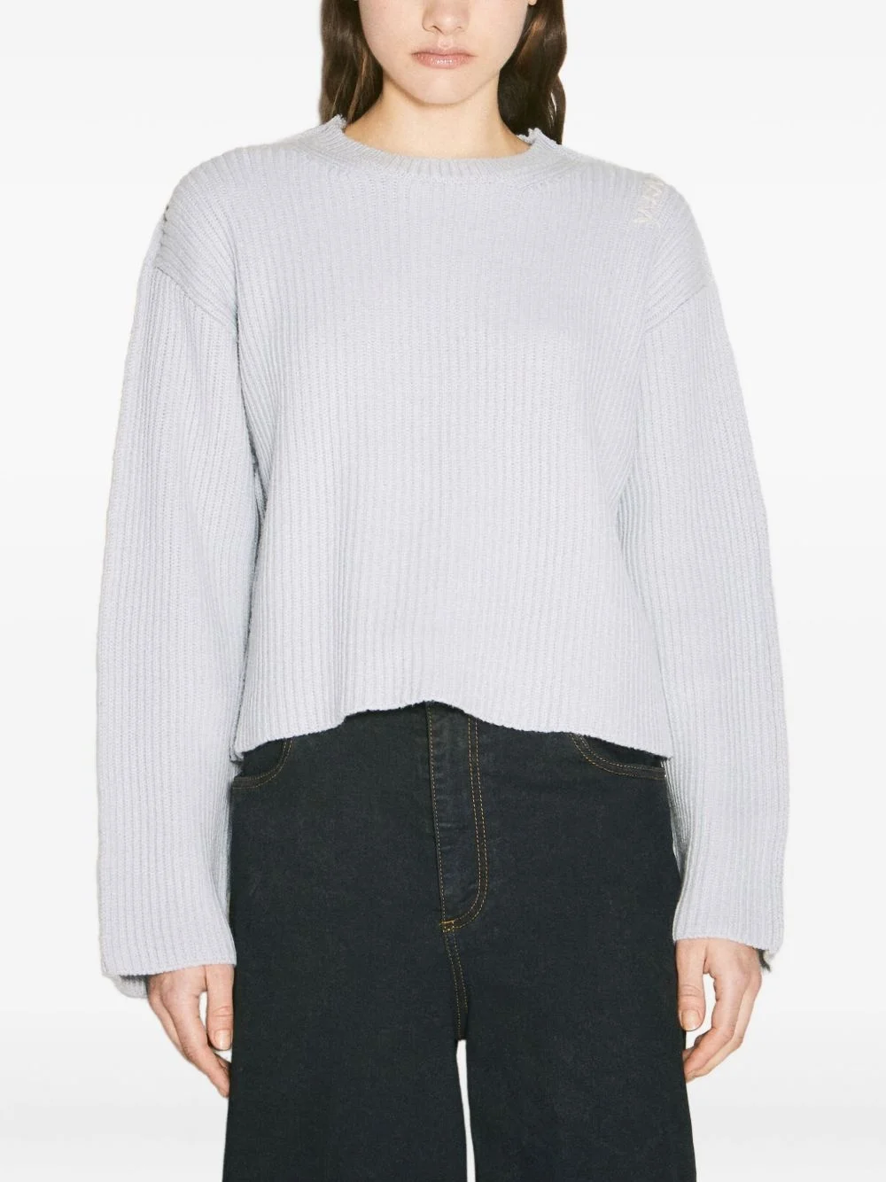 ribbed-knit sweater Highlights - Light grey - Crew neck - Drop shoulder - Long sleeves Made in Italy Composition Wool 100% Washing instructions Read Manufacturer Guidelines