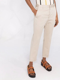 cropped straight-leg trousers Marni's casualwear offerings for SS22 feature classic silhouettes as evidenced by this pair of trousers. They are cut from a blend of linen and cotton and fall to a straight cropped leg. Made in Italy Composition Cotton 77%, Linen/Flax 23% SIZE & FIT Model measurements Height 5 ft 11 in(1.8 m) Bust/Chest 31.49 in(80 cm) Hips 35.82 in(91 cm) Waist 24.8 in(63 cm) FittingInformation This piece fits true to size. We recommend you get your regular size Cut for a slim fit Made with a mid-weight non-stretch fabric Washing instructions Machine Wash