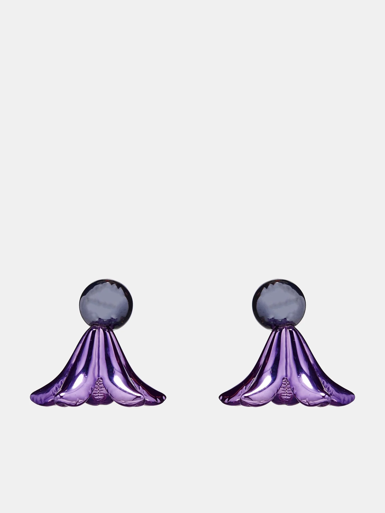 MARNI earrings in purple tones, puffy-effect flower design, brass construction, palladium finish, pin-back fastening, logo engraving. Made in Italy Body: 100% Brass Application: 100% Copper One Size