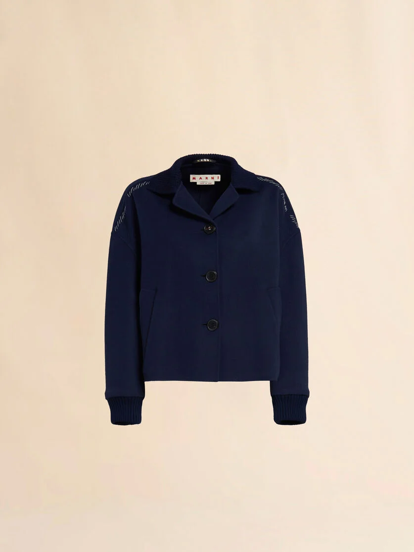 DEEP BLUE WOOL AND CASHMERE JACKET WITH KNIT TRIMS