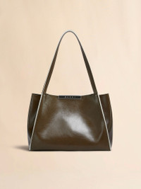 Cresta E/W tote bag handcrafted from shiny calfskin leather with a vachetta finish and captivating pull-up effect. Small size. Panelled gusset construction with contrast trims. Magnetic metal clasp with enamelled logo. Bonded suede-look lining. Inside open pocket and embroidered Marni logo. Made in Italy. Made in Italy MODEL SHMP0152U0P853300V58 COMPOSITION Body: 100% Calf Leather - Inside: 100% Calf Leather - Lining: 100% Polyester - Lining: 100% Polyurethane - Metallic Parts: 100% Brass