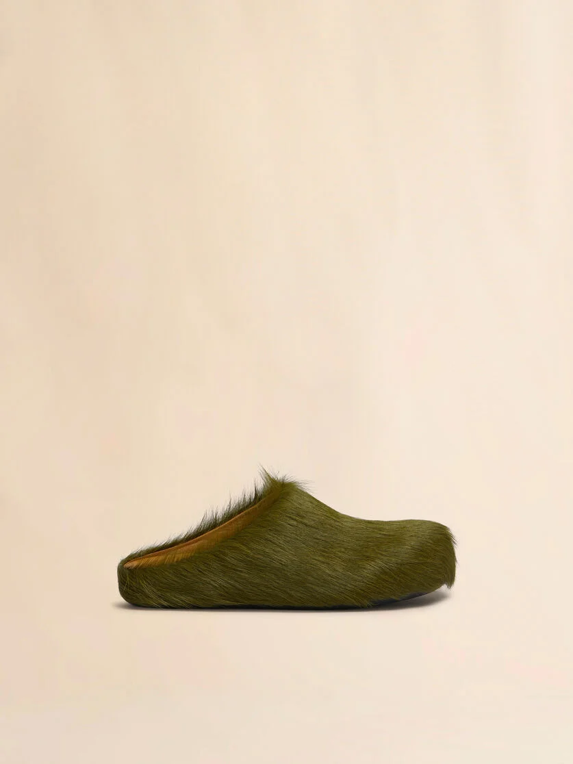 DEEP GREEN LONG HAIR CALFSKIN FUSSBETT SABOT