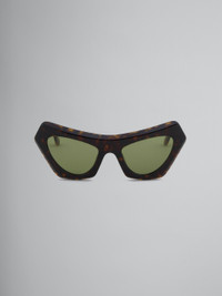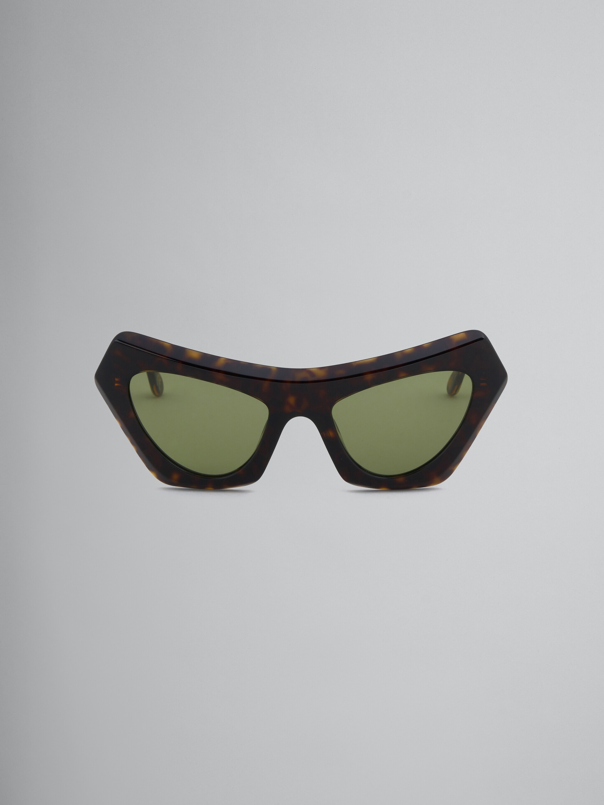 Devil's Pool sunglasses featuring a squared shape, crafted from shiny black acetate. Metal temple core with Marni logo. Black lenses. Made in Italy MODEL EWME0025A1H3600024EM COMPOSITION T1 100% AC