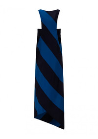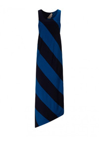 Dress by Marni, sleeveless model, crew neck, appliqué and elasticated opaque top, asymmetrical hem, two-tone oblique stripe design. DETAILS SKU: ABMA0836H2UTV886-00B99-SS2022 Composition: 100% VISCOSE Color: blue Size Chart: WOMAN IT Gender: WOMAN season: SS2022 MADE IN ITALY