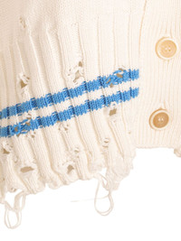 distressed-effect cardigan Highlights - White - Front button fastening - Stripe detailing - V-neck - Long sleeves Made in Italy Composition Cotton 100% Washing instructions Read Manufacturer Guidelines