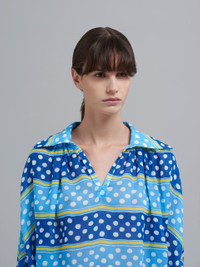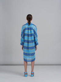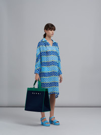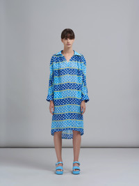 Dot & Stripe ramiè dress. Polo-shirt placket; 3/4 kimono sleeves; barrel cuffs. Side pockets. Gathered; back yoke. Made in Italy. DETAILS FIT The dress has a cocoon fit. The model is 180 cm tall. Model wearing size 40 IT. COMPOSITION Primary Fabric: 100% Ramiè Woven